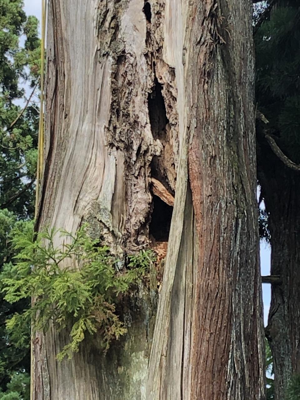 高さ9m上の幹の中に蜂の巣があるみたいで高所作業車にての作業!